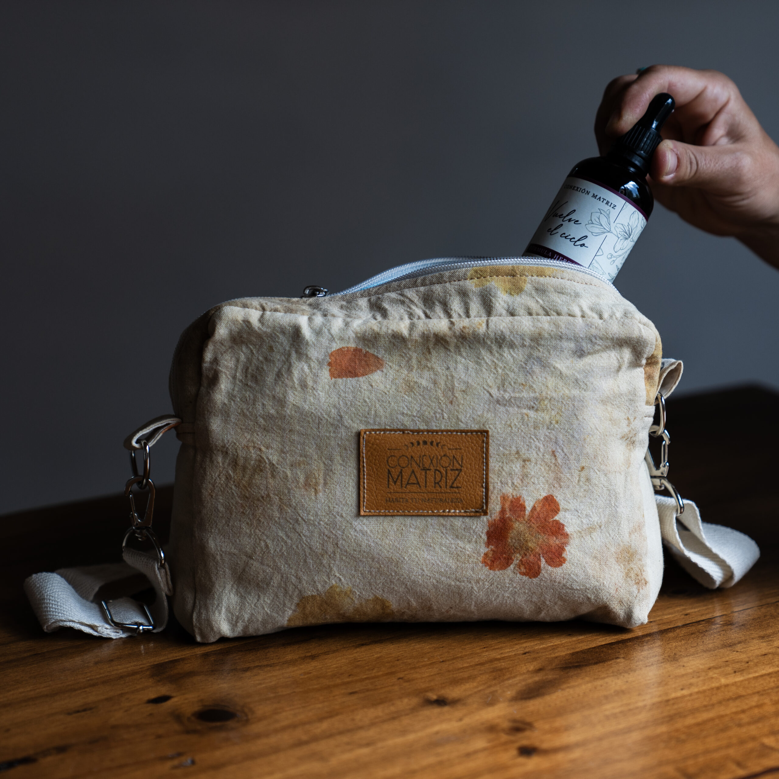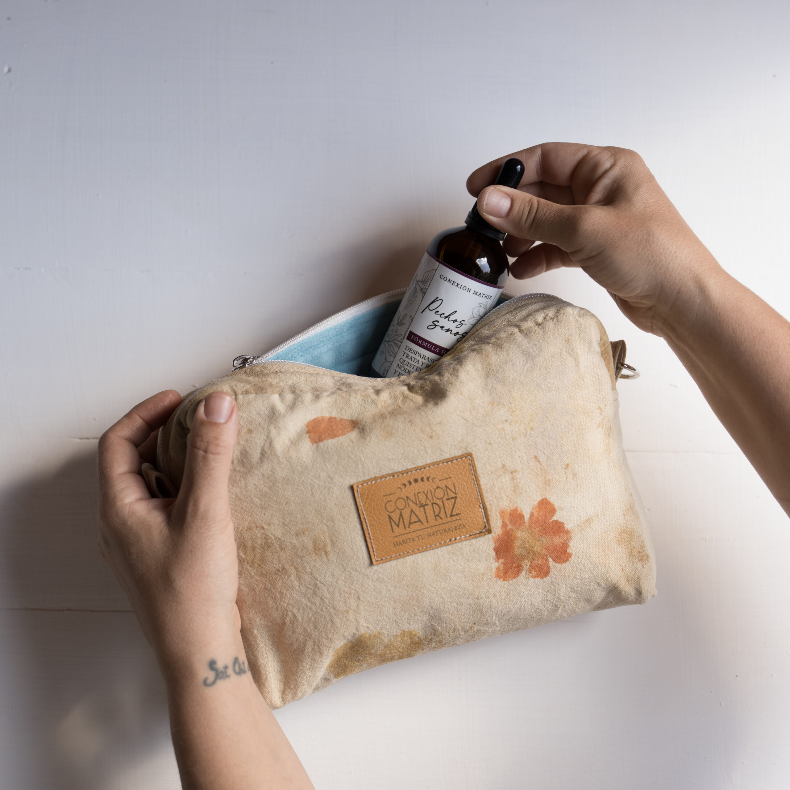 El Nécessaire que tienes en tus manos, está diseñado en su exterior con telas naturales de algodón impresas artesanalmente con flores y plantas silvestres. Recolectadas una a una, impresas una a una con técnicas tradicionales de impresión botánica.
